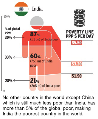 If poverty line is taken as per the new global standard of $5.5 PPP(Purchasing Power Parity) than 87% of Indians are poor?