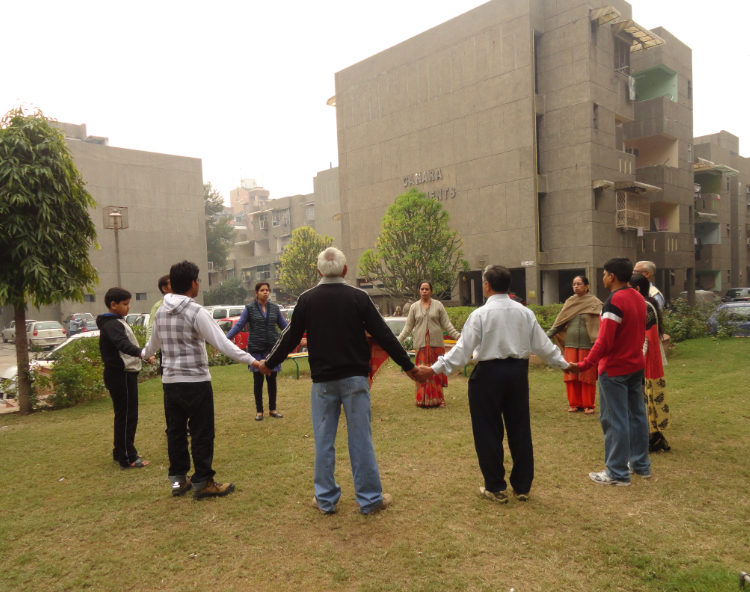 Making a Peace Ring is very simple. Just 3 people can join hands, right palm of one person over the left palm of another, and stand in a ring. Visualize the world in a small form as a globe or a small ball. The intention is what matters, it is not important that the visualization itself is clear or not.